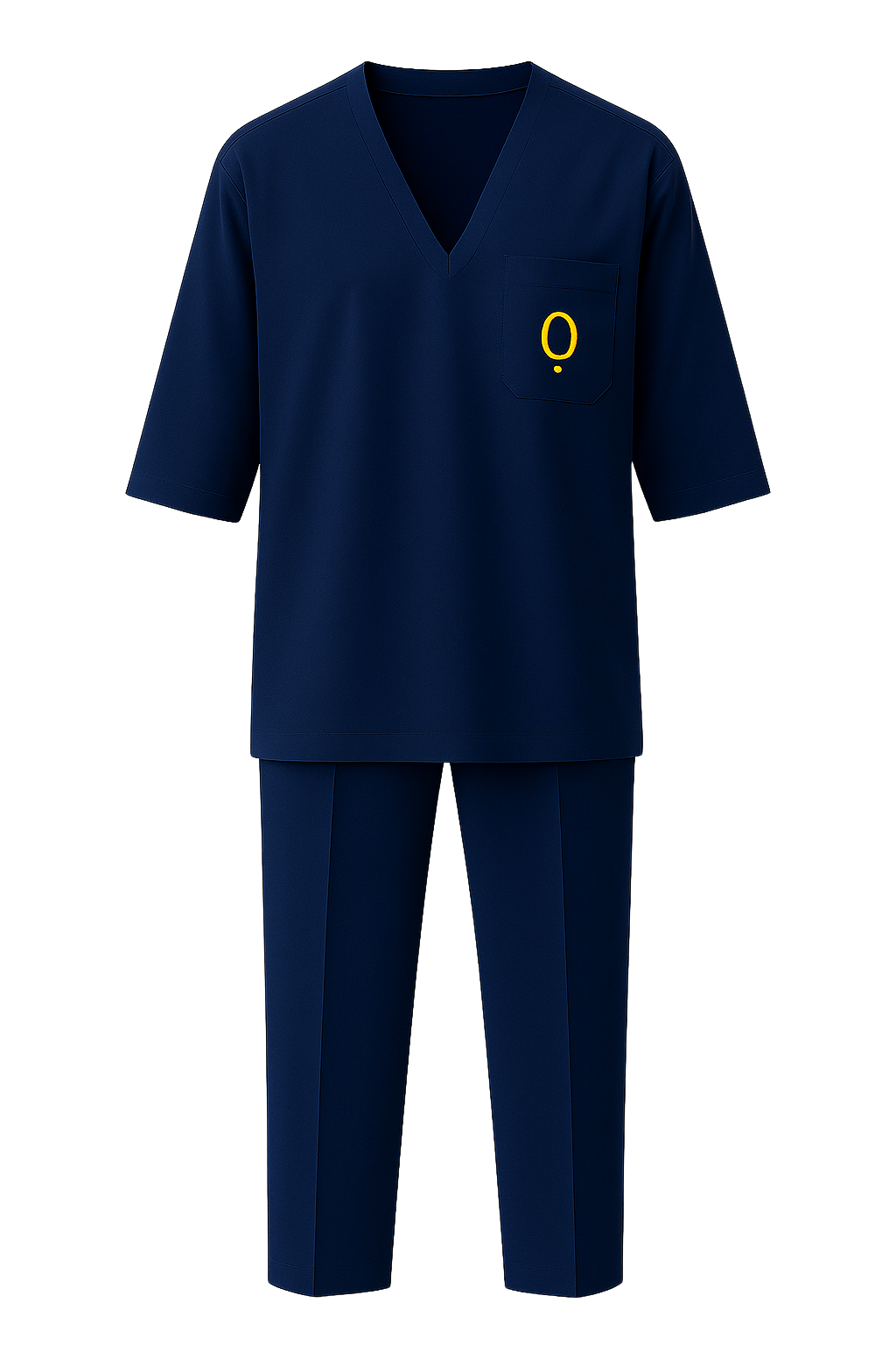 • Gold-embroidered ỌNUỌRA “Ọ” logo at the chest